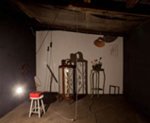 Land Slide was made for the Coleman Project Space, London, as part of the galleries annual artist residency programme shared with fellow artists Justin Hibbs and david Ben White. The installation has a light bulb attached to a mechanism that makes it swing and then to stop, causing the shadows of the objects in the space to move madly and then settle. It's an unstable environment and an exploration of feelings around moving off of my boat, my home for 8 years, onto dry land.